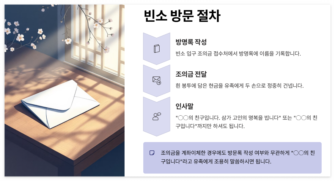 3) 빈소 방문 절차: 방명록 작성 & 조의금 전달