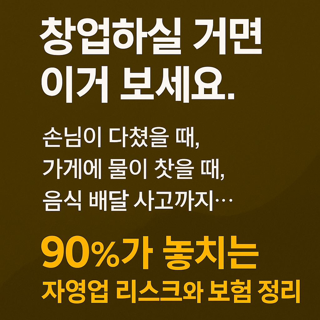 창업의 파란만장한 현실에서 예측 불가능한 사고는 가장 치명적인 리스크입니다. 자동차 충돌, 침수, 배달 사고처럼 상상조차 어려운 상황이 실제로 발생할 수 있습니다. 이런 리스크를 대비하고 싶은데 관련 보험은 뭘까요? 보험비는 어느정도 될까?