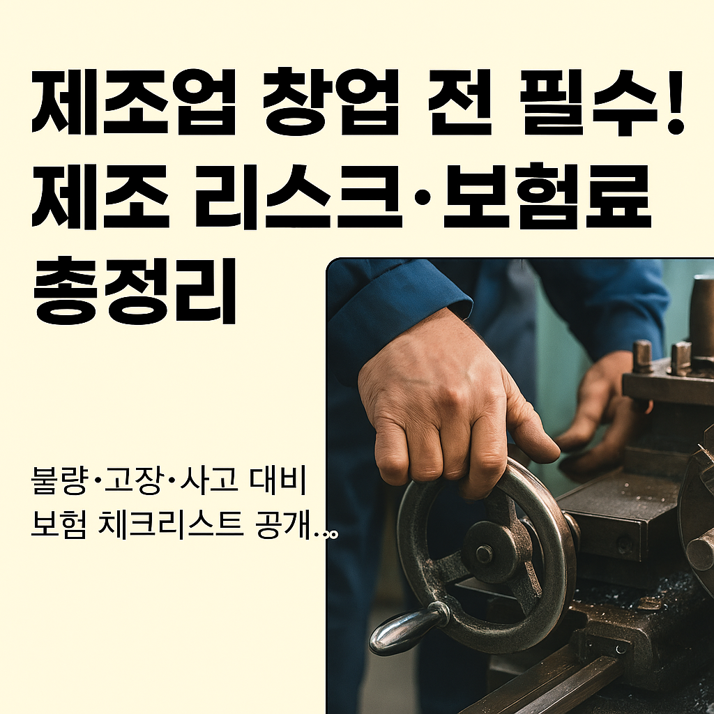 제조업 창업을 준비하고 있다면 꼭 확인해야 할 정보에요. 제품 불량으로 인해 클레임이 들어왔을때, 기계 고장으로 작업을 하지 못할때, 작업자 끼임사고, 탈진 사고까지… 소규모 제조업체는 제품 하나, 설비 한 대의 작은 사고가 수백만 원의 손해로 이어질 수 있습니다.