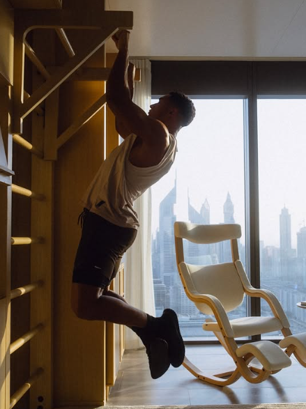 운동 애호가들에게 반가운 점은 모든 객실에 개인 운동 공간이 갖춰져 있다는 것입니다. 벽면에는 철봉 운동과 스트레칭에 활용할 수 있는 스웨디시 래더(목봉 사다리)가 설치되어 있고, 그 옆 수납함에는 요가 매트, 폼롤러, 스트레칭 밴드, 명상 쿠션 등이 구비된 리커버리 캐비닛이 숨겨져 있어 언제든 가볍게 운동이나 스트레칭을 할 수 있습니다. 책상 앞에는 일반 의자 대신 짐볼(운동용 볼)이 비치되어 있는 등 세심한 부분까지도 투숙객의 건강한 생활을 돕는 아이디어로 가득합니다. 일반 호텔이라면 라운지나 바가 있을 공용 공간도 이곳에선 리커버리 라운지로 운영됩니다. 허브 티와 영양 스낵이 준비된 이 휴식 공간에서는 필요에 따라 공기압 다리 마사지 기기를 착용하고 앉아 창밖의 아드리아 해 전경을 감상하며 천천히 몸을 식힐 수 있습니다