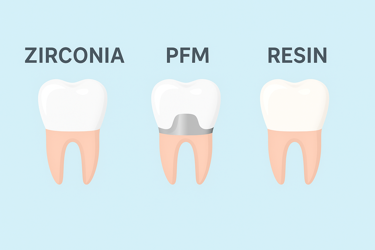 보철 재질별 비교 (지르코니아 vs 금속-도재 vs 레진)