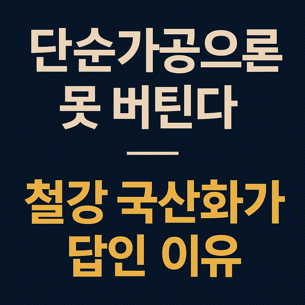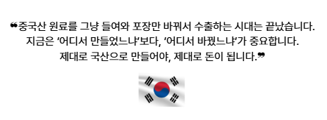 중국산 원료를 수입해 포장만 바꾸는 방식은 더 이상 수익 모델이 아니다. 이제는 중간재를 국내에서 실질적으로 가공하고, 고부가가치 제품으로 탈바꿈시켜야 살아남을 수 있다. FTA를 온전히 활용하고, 국내 산업을 활성화하며, 글로벌 시장에서의 신뢰를 유지하기 위한 핵심 전략은 '국산화'다. 철강부터 시작해서 기계, 전자부품 등 전 산업으로 확대될 때, 한국은 진정한 제조강국으로 다시 설 수 있다.