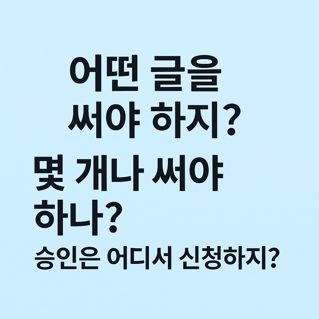 어떤 주제로 글을 써야 할지, 몇 개의 글이 필요한지, 어떤 형식이 적합한지, 승인 신청은 어떻게 해야 하는지… 모든 것이 낯설고 복잡하게 느껴질 수 있습니다.