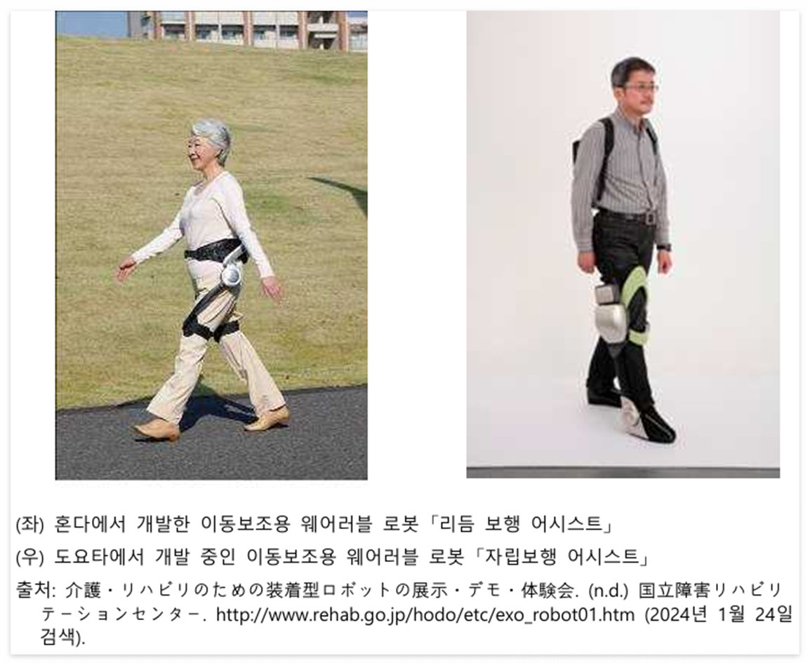 - 웨어러블 로봇: 근력 보조용으로 파나소닉, 혼다 등 대기업이 상용화