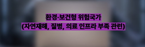 (자연재해, 질병, 의료 인프라 부족 관련)
