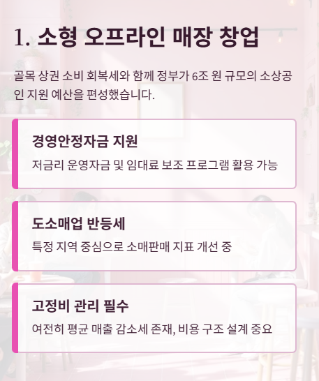 1. 소형 오프라인 매장형 창업 (소상공인 매장)