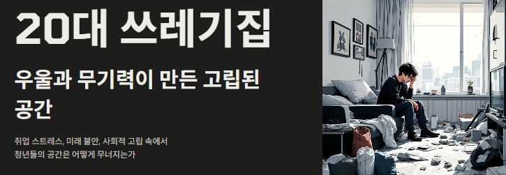 지금 당신이 사는 공간이 쓰레기 더미 속이라면, 그건 단순한 청소 문제가 아니다. 20대 청년층 사이에서 점차 확산되는 "쓰레기집 현상"은 우울, 번아웃, 고립 등이 얽힌 복합적 심리ㆍ사회 문제이다. 이 글에서는 왜 20대에게 쓰레기집이 발생하는지, 어떤 특징이 있는지 살핀 뒤, 실제 청소업체 비용과 서비스, 그리고 마지막으로 도움을 받을 수 있는 지원 기관까지 전부 정리한다.