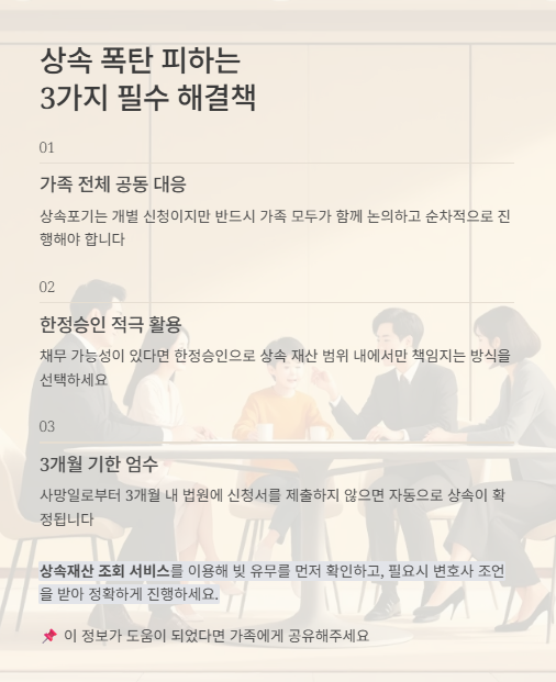 반드시 가족 전체 공동 대응 + 한정승인 활용 + 3개월 엄수
