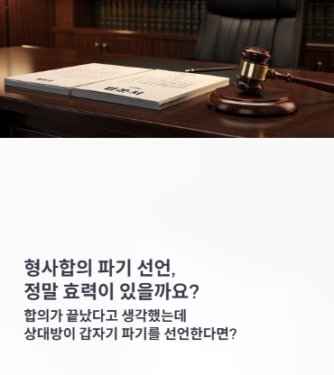 결론부터 말하면, 합의 파기 선언만으로 법적 효력이 사라지지는 않습니다.