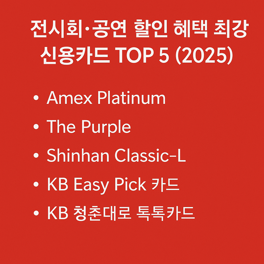 전시회·공연 할인 혜택 최강 신용카드 TOP 5 (2025)