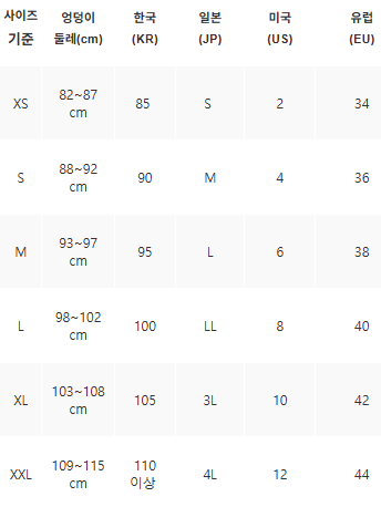 5. 중국 사이즈는 기준이 모호해서 제외. 단, 우리나라 사이즈보다 한 치수 이상 작음.