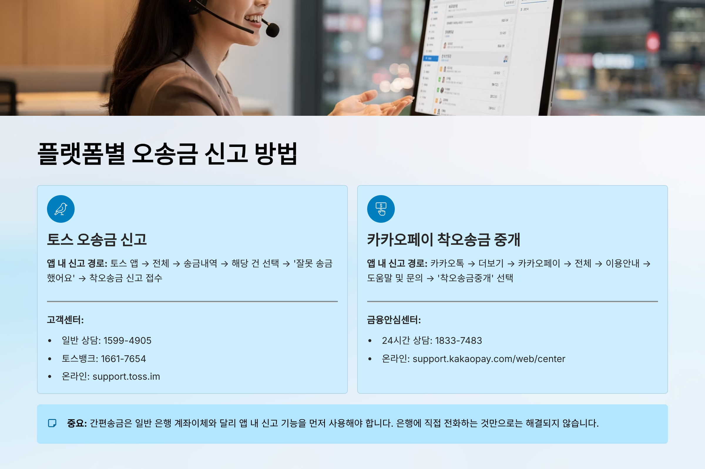 토스·카카오페이 오송금, 은행이랑 절차가 다릅니다간편송금별 ‘앱에서 먼저’ 해야 할 조치와 고객센터 루트 정리