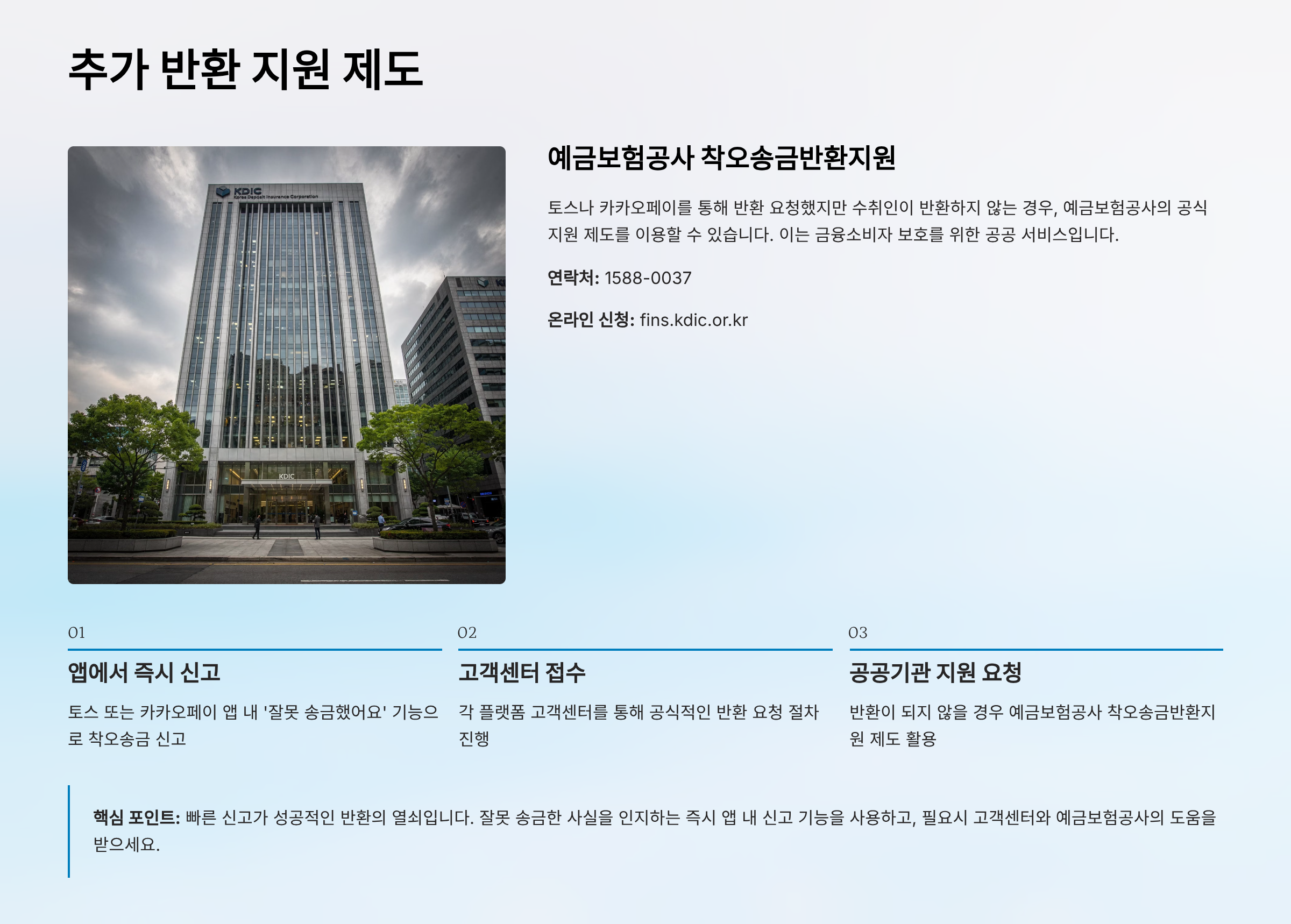 | 금융사 반환 못 함 | 예금보험공사 착오송금반환지원 |