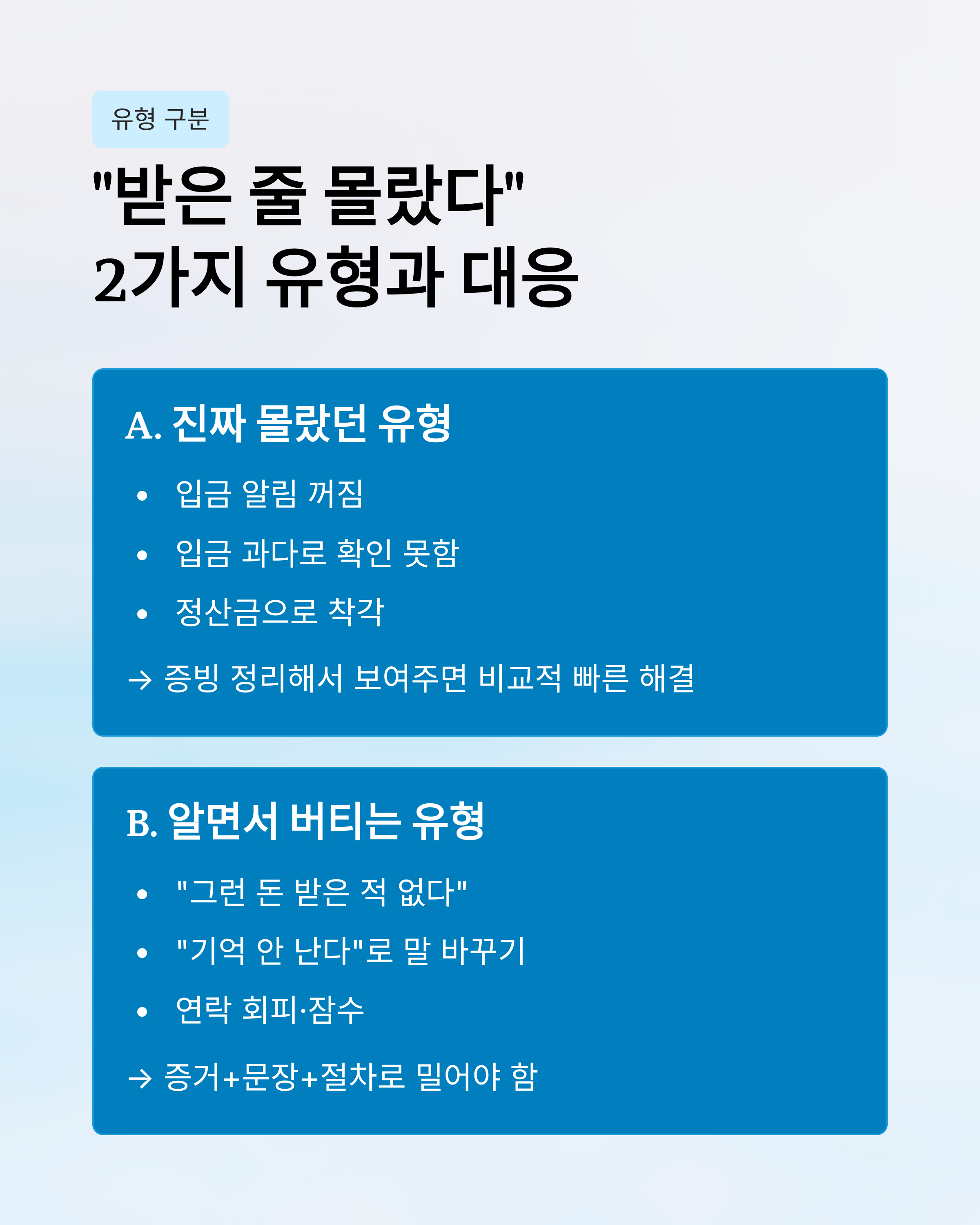2) “받은 줄 몰랐다” 주장에는 2가지 유형이 있습니다