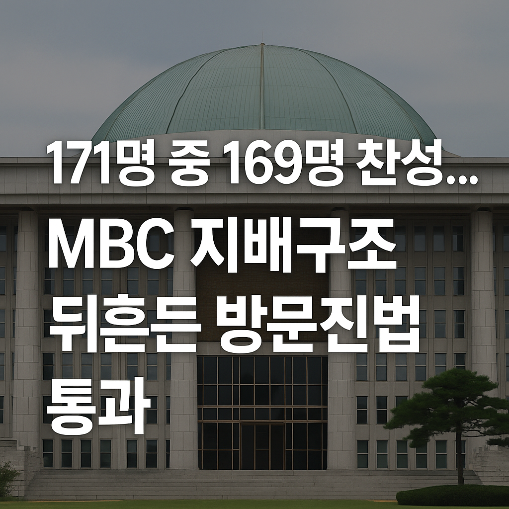 2025년 8월 21일, 국회 본회의에서 방송문화진흥회법 일부개정법률안(이른바 ‘방문진법’)이 가결되었습니다. 표결 결과는 재석 171명 중 찬성 169명, 반대 1명, 기권 1명으로, 사실상 압도적 다수의 지지를 얻어 통과되었습니다. 그러나 국민의힘은 본회의에 불참하며 강하게 반발했고, 여야의 시각차는 첨예하게 갈리고 있습니다. 이번 법안은 MBC의 대주주이자 운영의 핵심 주체인 방송문화진흥회의 지배구조를 근본적으로 개편하는 내용을 담고 있습니다.
